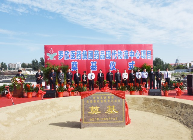圖為羅欣醫(yī)藥集團(tuán)藥品現(xiàn)代物流中心項目舉行開工奠基儀式時的情景
