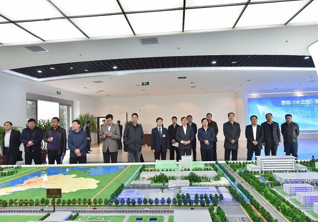 3月28日,青海省海北藏族自治州州委常委、副州長、山東省政府副秘書長耿濤,海北州委常委、海晏縣委書記董玉毅帶領海晏縣黨政考察團蒞臨我公司參觀考察。臨沂市副市長、蘭陵縣委書記鄭連勝,羅莊區區委副書記、區長劉凱,區委常委、區委辦公室主任、區總工會主席彭有聚,區政府副區長、羅莊街道黨工委書記莊少春,區領導李先開、劉克區、劉夫慶、王鐵驪、苗士青、李向前以及股份集團公司副總經理韓風生等陪同參觀。