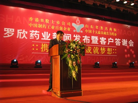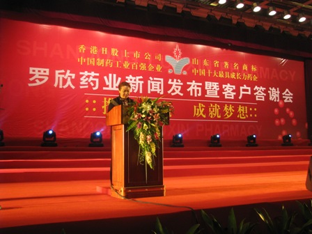 2007年12月6日,昆明全國藥品交易會召開之際,羅欣藥業在昆明市國貿中心(千人會議廳)隆重舉行羅欣藥業新聞發布暨客戶答謝會,發布了新產品上市、股票成功增發、三期工程建設、打造羅欣醫藥城建設、合資成立齊魯羅欣醫藥公司等新聞,并對長期以來關心、支持羅欣藥業成長的領導、客戶及各界朋友表達感謝之情。