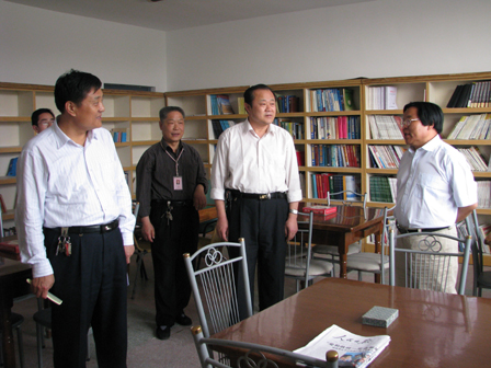 上圖為山東省總工會民主管理部部長候國華(前排右二)參觀公司“職工之家”