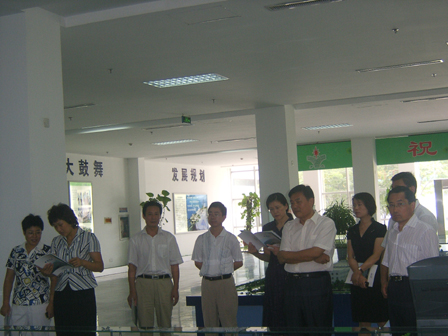 2008年8月26日市總工會副主席張賢德(前排右二);市總工會黨組成員、紀檢組長沈繼麗;市總工會組織部長韋中方(前排左四)等蒞臨我公司檢查指導工作,對公司工會建設、職工之家、廠務公開等做了了解和指導,并聽取了公司工會主席張祥軍關于羅欣工會工作的匯報,對公司工會建設工作給予了充分肯定。羅莊區委組織部長王法菊(前排左二)、羅莊區總工會主席沈慶榮(前排左三)、羅莊街道辦事處主任齊連秀(前排左一)等陪同。