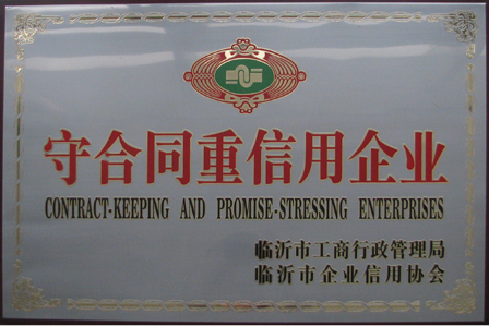 2009年2月,公司被臨沂市工商行政管理局、臨沂市企業信用協會評為“守合同重信用企業”。