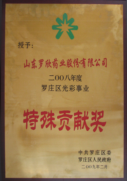 2009年2月,我公司被中共羅莊區委、羅莊區人民政府授予“2008年度羅莊區光彩事業特殊貢獻獎”。