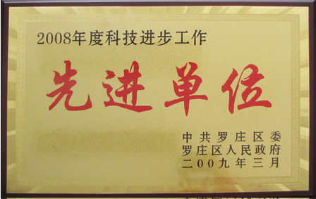 2009年3月,我公司被中共羅莊區委、羅莊區人民政府評為“2008年度科技進步工作先進單位”榮譽稱號。