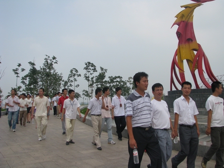 培訓開始的第一天,公司組織新員工參觀完公司展廳,使新員工對羅欣集團有了概括的了解之后,帶領員工到各個車間及銷售公司進行實地的參觀學習,強化認識,提高員工對整個集團公司的認知和了解。下午帶領新員工乘坐三輛中巴,參觀了臨沂濱河大道、小埠東橡膠壩、沂蒙紅色廣場、鳳凰廣場、沙灘浴場、臨沂書法城、臨沂人民廣場等景區,讓新員工對臨沂有一個更加清晰的認識,增加員工對企業的歸屬感。