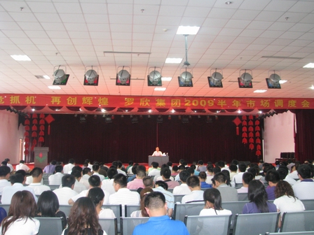 2009年7月14日,羅欣集團2009年半年市場調(diào)度會在公司管理中心四樓大會議室舉行。會上董事長指出:2009年上半年公司上下凝心聚力、攻克難關(guān)、迎難而上、加快了公司發(fā)展,并提出2009年下半年工作目標(biāo)及工作安排,要求市場人員在工作之余要認(rèn)真學(xué)習(xí),用心做事,建立起學(xué)習(xí)型組織團隊,形成人才競爭機制,創(chuàng)造人才成長平臺。董事長對新入職的大學(xué)畢業(yè)生要求努力闖“三關(guān)”。(第一關(guān)是無知關(guān):一個人進入無知關(guān)所處的時間長短取決于其進入學(xué)習(xí)區(qū)的速度與努力。第二關(guān)是學(xué)習(xí)關(guān):進入企業(yè)中如果不學(xué)習(xí)很快就會被公司淘汰出局。第三關(guān)是陣痛關(guān):一個成功的人與失敗的人都會經(jīng)歷許多曲折與坎坷,每個人都不應(yīng)該害怕陣痛而放棄自己追求與事業(yè)。)