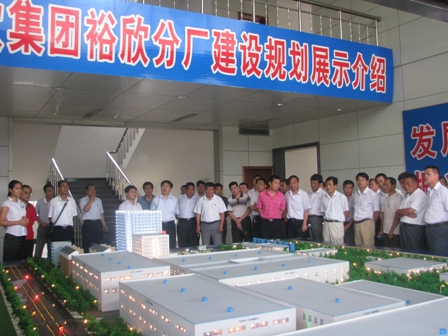 經(jīng)貿(mào)考察團一行觀看了裕欣分廠建設(shè)規(guī)劃沙盤模型,并聽取了集團“十二五”發(fā)展規(guī)劃的介紹,對公司近年來的發(fā)展和取得的成就給予了高度評價。