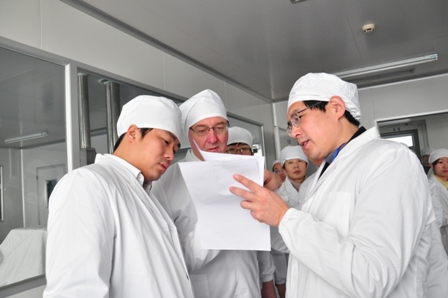2012年2月7日,歐盟認(rèn)證專家石泰牛博士一行蒞臨公司對新擴建廠區(qū)和廠房的歐盟認(rèn)證改造工作進行為期三天的檢查指導(dǎo)工作。