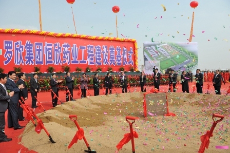 上圖為各級領導為集團恒欣藥業項目開工培土奠基