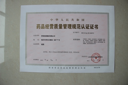 2014年4月29-31日,山東省食品藥品監督管理局藥品審評認證中心,對我公司進行了為期三天的GSP認證現場檢查,我公司一次性順利通過GSP現場檢查認證,5月24日正式取得認證證書。