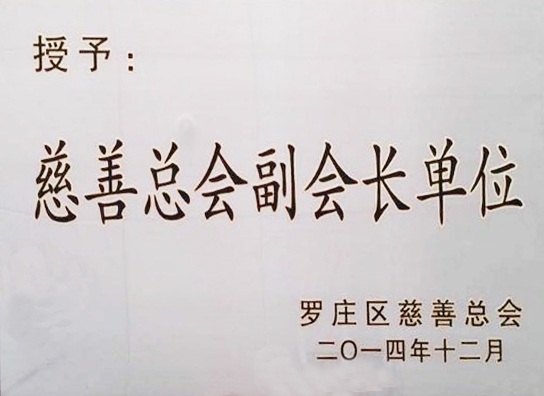 公司榮獲“慈善總會副會長單位”榮譽稱號(2015-2-7)