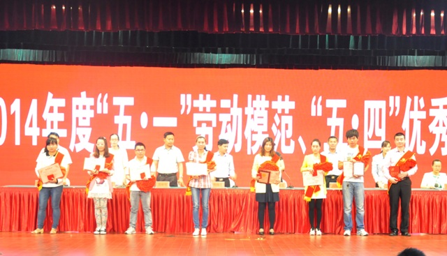 上圖為羅欣集團“五·一”勞動模范、“五·四”優秀青年表彰大會頒獎現場