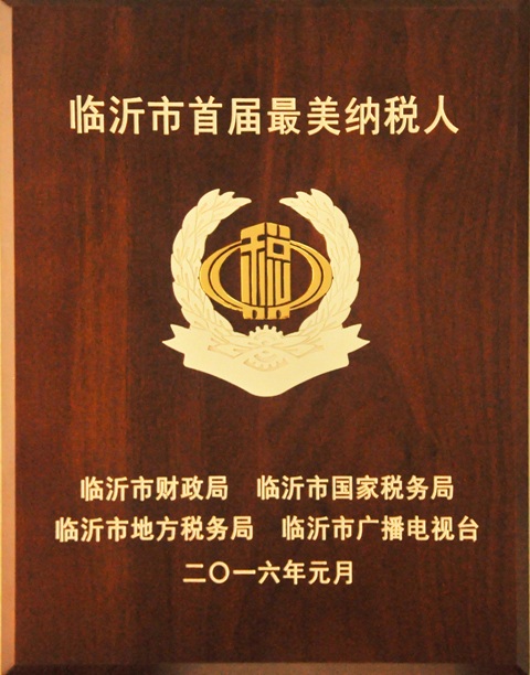 1月15日,臨沂市首屆“最美納稅人”頒獎盛典在臨沂電視臺舉行,我公司在此次評選中榮獲“最美納稅人”榮譽稱號。市委常委、常務副市長左沛廷,市人大常委會副主任、市總工會主席孫豐剛,市財政局、國稅局、地稅局等部門主要領導參加了頒獎活動,股份集團副總經理韓風生代表公司上臺領獎。