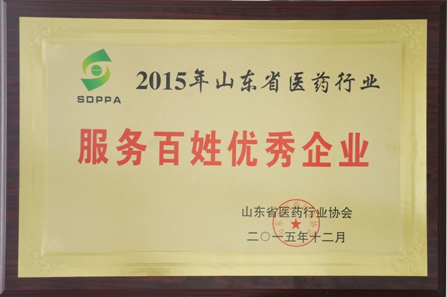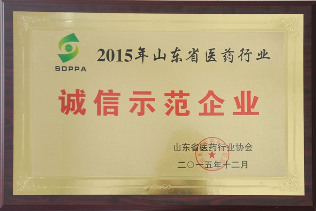 2015年12月18日,“山東省醫藥行業優秀品牌頒獎典禮”在濟南舜耕國際會展中心隆重舉行,在此次頒獎典禮活動中,我公司榮獲2015年山東省醫藥行業“創新型企業”、“服務百姓優秀企業”、“誠信示范企業”3個獎項。